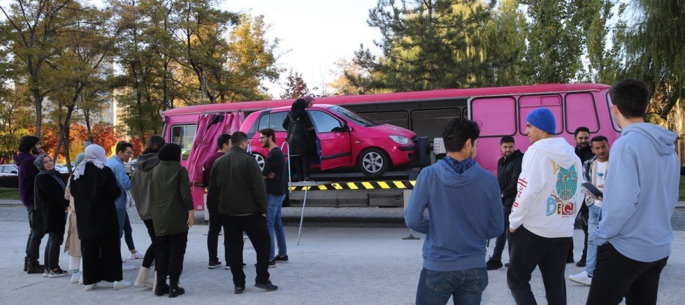 Emniyet kemerini takmanın önemini vurgulamak amacıyla düzenlenen eğitim uygulamalı olarak Sümer Kampüsü Çelik Bina Önündeki alanda gerçekleştirildi.