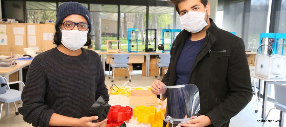 Maske ve yüz siperlikleri, Makine Mühendisliği Bölümü’nün laboratuvarında, öğrenciler tarafından, Endüstri Mühendisliği ve Mimarlık Bölümlerinin de üç boyutlu yazıcıları ile üretiliyor.