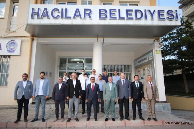 Hacılar Belediye Başkanı Bilal Özdoğan, tarafından karşılanan Bakan Yardımcısı Mustafa Aksu, Hacılar Belediyesi’nde düzenlenen ve AK Parti Kayseri İl Başkanı Şaban Çopuroğlu, Devlet Su İşleri 12. Bölge Müdürü Okan Bal, Kayseri Tarım ve Orman İl Müdürü Mustafa Şahin, AK Parti Hacılar İlçe Başkanı Ahmet Övüç’ün de katıldığı toplantıda Belediye Başkanı Bilal Özdoğan’dan ilçede yürütülen çalışmalar hakkında bilgi aldı.