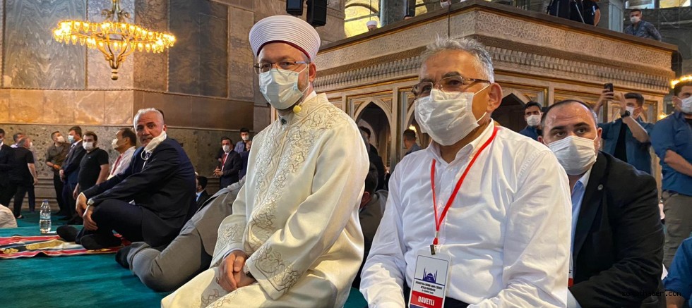 . İstanbul’un fethine kadar 916 yıl kilise, 1453’ten 1934’te alınan kararla müze oluncaya dek cami olarak kullanılan, 86 yıl müze olarak hizmet veren Ayasofya-i Kebir Cami-i Şerif’i 86 yıl aradan sonra yeniden ibadete açıldı. Ayasofya-i Kebir Cami-i Şerif’in ibadete açılışına özel davetle çağrılan Büyükşehir Belediye Başkanı Dr. Memduh Büyükkılıç, Cumhurbaşkanı Recep Tayyip Erdoğan’ın katılımlarıyla gerçekleşen ilk Cuma namazını Ayasofya’da eda etti. Kararlı ve iradeli duruşuyla Ayasofya Camisi’ni yeniden ibadete açan Cumhurbaşkanı Recep Tayyip Erdoğan, Ayasofya-i Kebir Cami-i Şerif’te namaz öncesi Kuran-ı Kerim okudu. Ayasofya’da kılınan ilk Cuma namazında yer almanın mutluluğunu yaşayan Büyükşehir Belediye Başkanı Memduh Büyükkılıç, sosyal medya hesabından yaptığı açıklamada duygularını şu şekilde ifade etti, “Diyanet İşleri Başkanımız Prof. Dr. Sayın Ali Erbaş ile birlikte Ayasofya-i Kebir Cami-i Şerifi’ndeyiz. 86 yıl sonra Ayasofya’da ilk cuma namazını Diyanet İşleri Başkanımız kıldırdı ve kılıçla minbere çıktı. Gerçekten tüylerimiz diken diken ve bu duyguyu anlatacak kelime bulamıyorum. Hamdolsun. Bu güzelliği yaşamamıza vesile olan Cumhurbaşkanımız Sayın Recep Tayyip Erdoğan’a şükranlarımı sunuyorum. Allah kendisinden bin kere razı olsun”