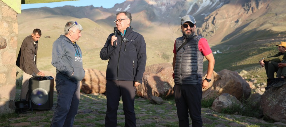 Başkan Özdoğan, “41 sporcumuz zirveye çıkmak için burada kampa gelmiş durumda. Doğaseverler de aramızda. Öncelikle zirve yapmaya niyetlenen dağcı arkadaşlarımıza kolaylıklar diliyorum. İnşallah güzel bir zirve yürüyüşünü başarıyla tamamlarlar ve bu deneyimi kariyerlerine eklemiş olurlar. Biz burada bir haftadır HADAK gençleri olarak kamptayız. Değerli hocalarımızın nezaretinde doğa kampı düzenliyoruz. Bu kamplar, gençlerimizin doğayla iç içe olmasını sağlıyor ve kondisyonlarını artırıyor. HADAK sporcuları, kayak ve diğer spor alanlarında ilçemizin güzel gençleri olarak yer alıyorlar. Bu etkinliklerde emeği geçen tüm hocalarıma ve yönetim kuruluna teşekkür ediyorum. Zirve yapmanın ne kadar önemli ve disiplin gerektiren bir iş olduğunu benden çok sporcularımız biliyor. Birliktelik ve kurallara uymak burada çok önemli. İnşallah kazasız belasız bir zirve yapar ve aramıza dönersiniz. Hepiniz hoş geldiniz, sefalar getirdiniz. Rabbim kazasız belasız bir zirve nasip etsin” dedi.