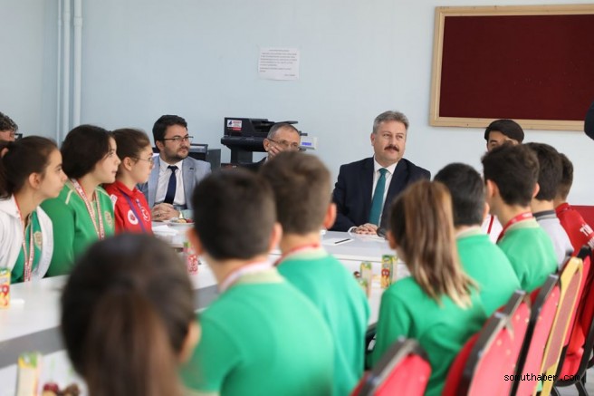 Başkan Dr. Mustafa Palancıoğlu, spora ve sporculara destek olmaya devam edeceklerini söyleyerek öğrencilere çanta ve şapka hediye etti.