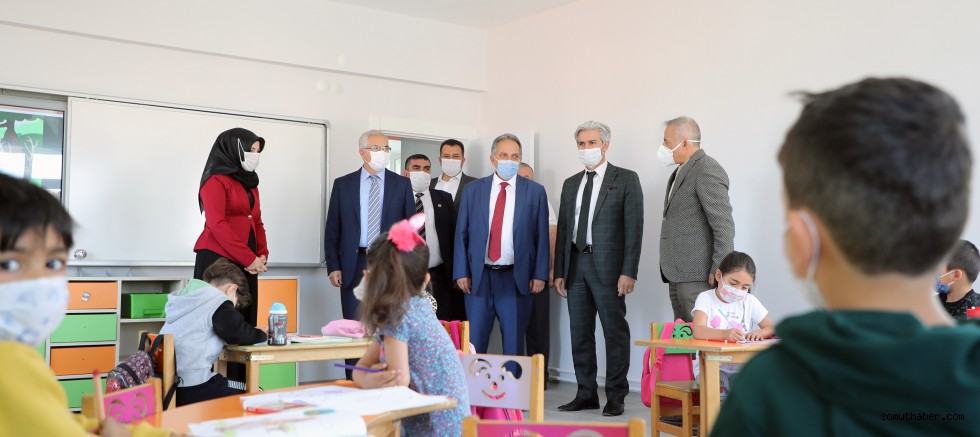 İki kattan oluşan, 250 metrekare kapalı alanı bulunan ve anaokulu eğitimine uygun olarak yeniden düzenlenen binayı inceleyen heyet, iki sınıfta eğitim gören 34 öğrenciyi ziyaret etti.