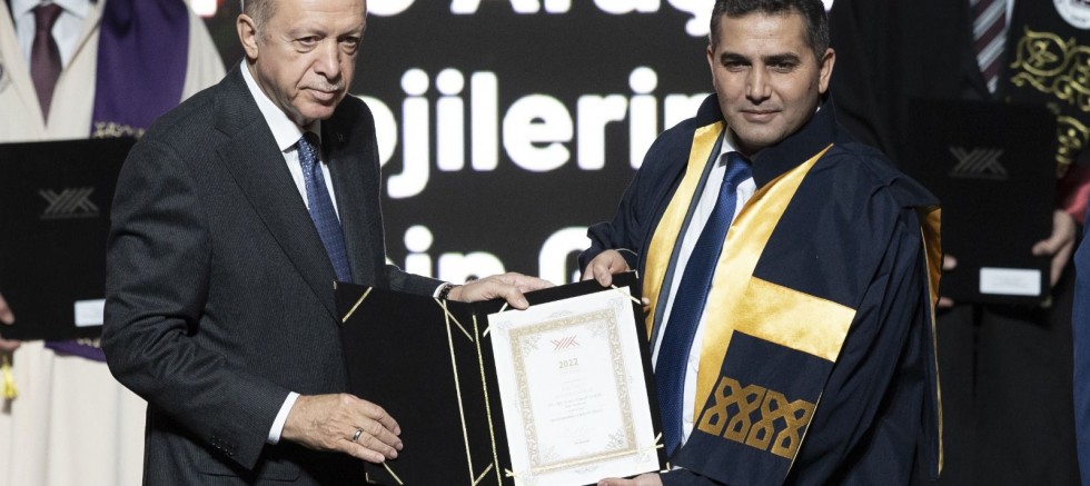 Ödül, ERÜ Rektörü Fatih Altun ve Proje Yürütücüsü Dr. Öğr. Üyesi Emrah Tıraş’a Cumhurbaşkanı Recep Tayyip Erdoğan tarafından Yükseköğretim Kurulu (YÖK) 2022-2023 Akademik Yıl Açılış Töreni’nde verildi.