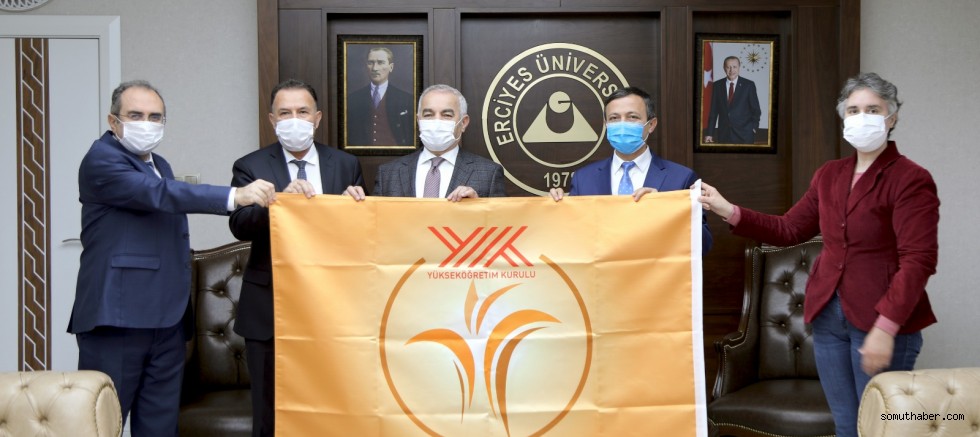 ERÜ Rektörü Prof. Dr. Mustafa Çalış, tarafından Rektörlük Makamında mekânda erişim alanında turuncu bayrak alan Eczacılık Fakültesi Dekan Yardımcısı Dr. Öğr. Üyesi İffet İpek Boşgelmez, Turizm Fakültesi Dekanı Prof. Dr. Ömer Şanlıoğlu ve Veteriner Fakültesi Dekanı Prof. Dr. Abdullah İnci’ye turuncu bayrak belgeleri takdim edildi.