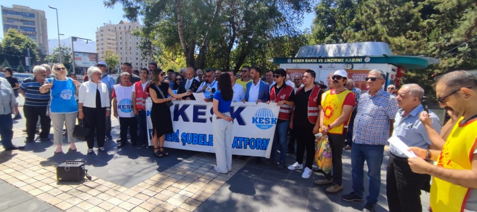 KESK Kayseri bileşenleri ise Cumhuriyet Meydanında bir araya geldi. Eyleme Kayseri’deki Demokratik kitle Örgütlerinin temsilcileri ile CHP Kayseri Milletvekili Aşkın Genç de destek verdi. KESK dönem Sözcüsü Sedat Ünsal burada yaptığı konuşmada şu ifadelere yer verdi: