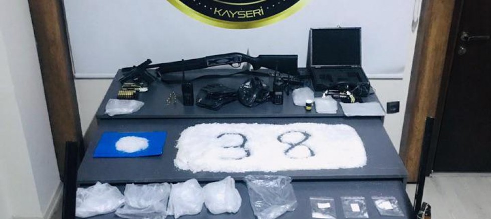 Kayseri İl Emniyet Müdürlüğü Narkotik Suçlarla Mücadele Şube Müdürlüğü ekiplerince yapılan çalışmada M.A, L.A ve R.A isimli şahısların üzerlerinde, araçlarında ve ikametlerinde yapılan aramalarda; 2 kilo 700 gr Metamfetamin Maddesi, 3 Adet Ruhsatsız Av Tüfeği, 1 Adet Ruhsatsız Tabanca, Şarjör ve 61 Adet fişek, 2 Adet El Telsizi ve Aparatları ele geçirildi.