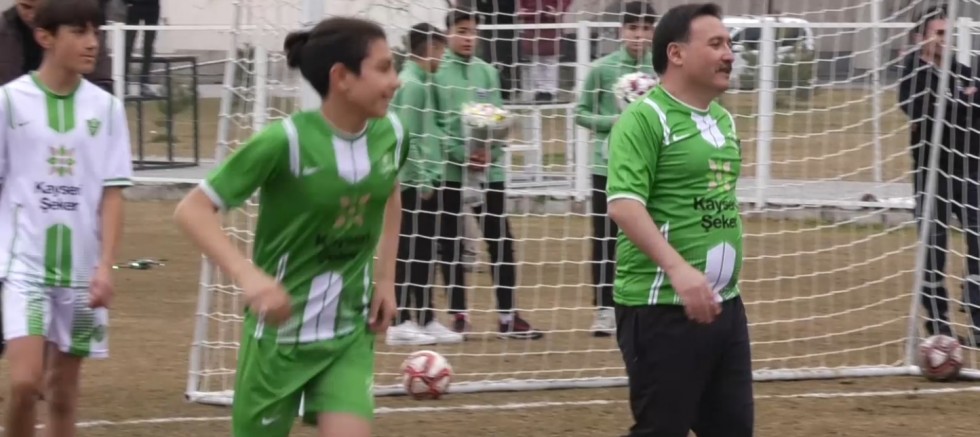 Kayseri Valisi Gökmen Çiçek ve Kayseri Pancar Ekicileri Kooperatifi Yönetim Kurulu Başkanı Hüseyin Akay, ERVA Spor Kulübü’nün minik sporcuları ile futbol maçı yaptı.