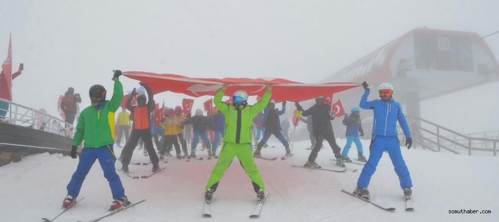 İlimizde faaliyet gösteren spor kulüplerine bağlı 130 kayak sporcusu, Vatanımızın bölünmez bütünlüğü ve bekası için yurt içinde ve yurt dışında fedakârca görev yaparken şehit olan kahraman Mehmetçiklerimiz anısına 2 bin 650 metre yükseklikten ellerinde Türk Bayraklarıyla kayarak aşağı indi. Karla kaplı alanda sporcuların ellerinde dalgalan Al Bayrağımız, izleyenlere duygulu anlar yaşattı. Sporcular Şehitlerimiz için yaptıkları saygı duruşunun ardından İstiklal Marşımızı okudular. Tören, tekbir ve yapılan dualarla son buldu.