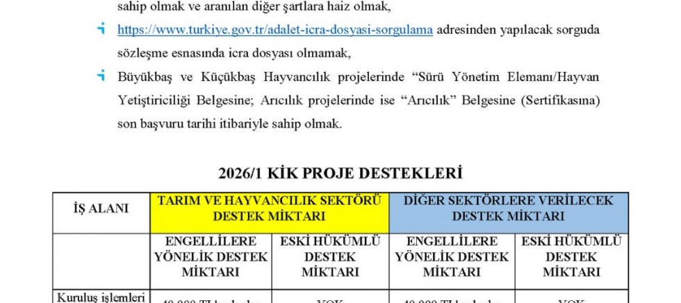 Eski hükümlüler için başvurular ise Kayseri Denetimli Serbestlik Müdürlüğü’ne, 16 Ocak 2026 mesai bitimine kadar şahsen, bir asıl ve bir kopya olacak şekilde yapılacak. Diğer proje başvuruları da aynı tarihe kadar İŞKUR İl Müdürlüğü’ne şahsen veya posta yoluyla iletilebilecek.