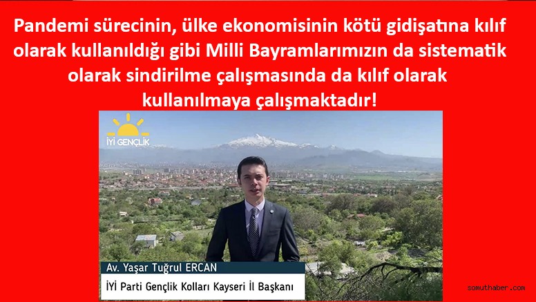 Siyasi partiler başta olmak üzere birçok kurum ve kuruluş yasak kararını eleştirirken, bir eleştiri de İyi Parti Kayseri İl Gençlik Kolları Başkanı Av. Yaşar Tuğrul Ercan’dan geldi. Ercan, şunları söyledi: