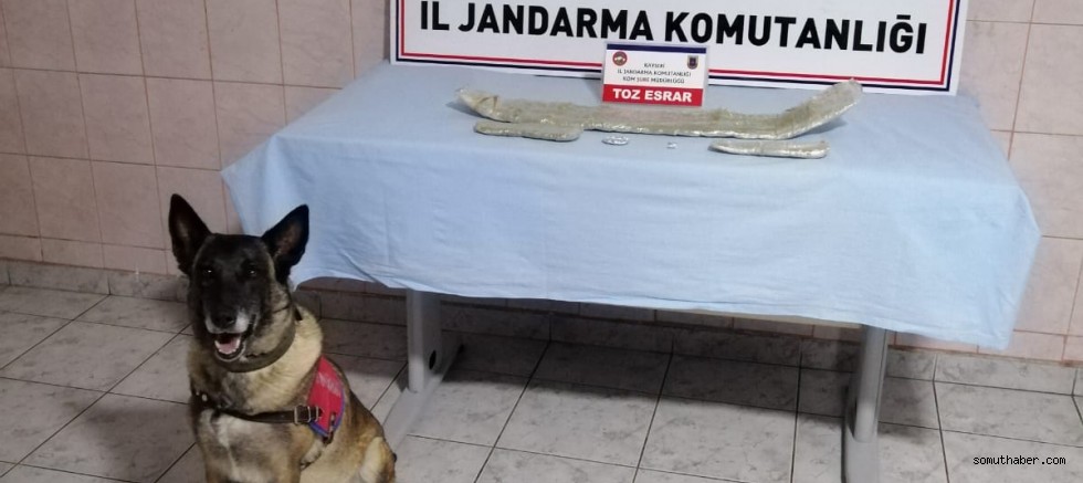 Kayseri İl Jandarma Komutanlığınca yürütülen asayiş faaliyetleri kapsamında uyuşturucu madde ticareti ile mücadele kapsamında icra edilen faaliyette, Kayseri İli, Pınarbaşı İlçesi, Solaklar mevkiinde durdurulan 2 yolcu otobüsünde yapılan arama çalışmasında, A.C. isimli şüphelinin üzerinden bin 200 gram, M.A. S.’nin üzerinden ise 3 gram toz esrar ele geçirildi.