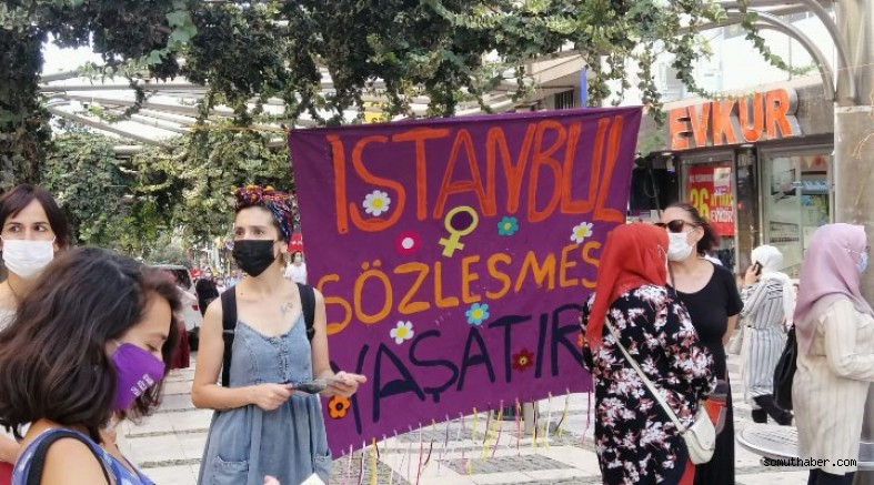 İstanbul Sözleşmesi’nin feshedilmek istenmesine karşı haftalardır eylemlerini sürdüren kadınlar, sosyal medyada ve sokakta seslerini yükseltmeye devam ediyor. Bugün AKP Merkez Karar ve Yönetim Kurulu’nda (MKYK) sözleşmenin feshedilmesine ilişkin toplantı yapılacak. Toplantıdan önce ise ülkenin dört bir yanında haklarına sahip çıkan kadınlar, İstanbul Sözleşmesi’ne ilişkin broşürler dağıttı. Pek çok kentte sokaklara, caddelere ve binalara dev pankartlar asıldı.