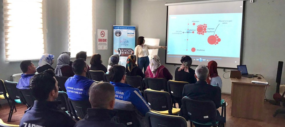 Bu kapsamda, Kayseri Büyükşehir Belediyesi bünyesinde faaliyet gösteren Kayseri Mesleki Eğitim ve Kültür A.Ş. (KAYMEK) tarafından, Çevre ve İklim Değişikliği Farkındalık Kursu verildi.