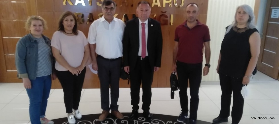 Eğitim-Sen Kayseri Şube Başkanı Sedat Ünsal, Şube Sekreteri Deniz Altınkılıç, Yönetim Kurulu Üyeleri Nilgün Demir Nuray, Tevhide Koçer ve Kezban Yüksel Kayseri Barosu Başkanı Av. Cavit Dursun’u ziyaret ederek, mücadele sürecinde yanlarında olduklarını belirttiler.
