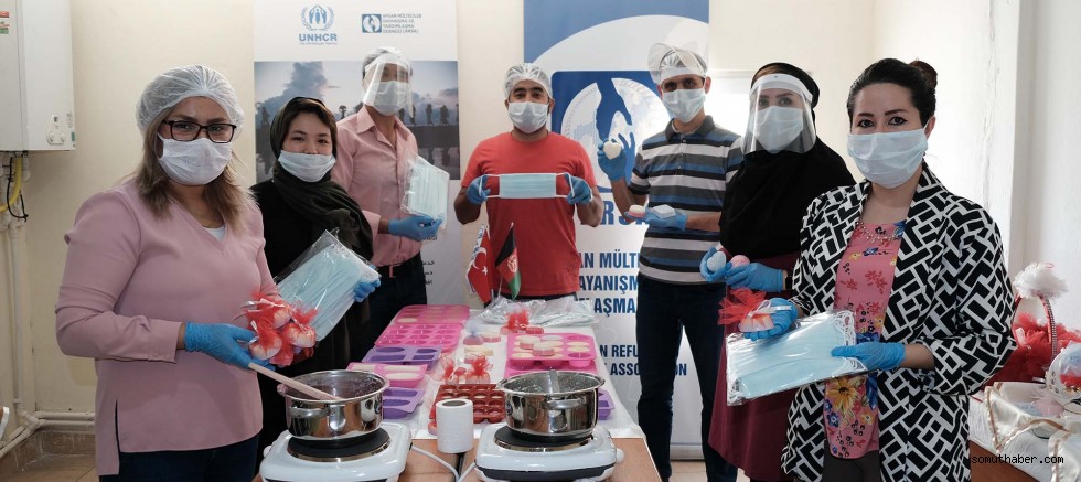Genel merkezi Kayseri'de olan Afgan Mülteciler Dayanışma ve Yardımlaşma Derneği gönüllüsü 12 kişi, 2 hafta önce maske ve sabun üretimine başladı. Dernek binasında, 'Çalışkan Eller Projesi' kapsamında üretilecek maske ve sabunlar, kamu kurumlarına, sağlık kuruluşlarına, özellikle mültecilerle ilgili çalışma yürüten sivil toplum kuruluşlarına ve ihtiyaç duyan halka ücretsiz olarak dağıtılacak. Proje kapsamda 30 bin maske ve 2 bin 500 adet sabun üretimi yapılacak.