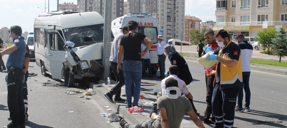 Kaza, saat 16.00 sıralarında, Melikgazi ilçesi Esentepe Mahallesi Girne Şehitler Caddesi'nde meydana geldi. Şahin A. yönetimindeki 38 ADJ 521 plakalı kamyon, tali yoldan çıkarak şehir yönüne giden işçileri taşıyan Osman G.'nin kullandığı 38 P 0813 plakalı minibüse çarptı. Çarpmanın şiddetiyle, minibüs refüjdeki aydınlatma direğine çarptı.