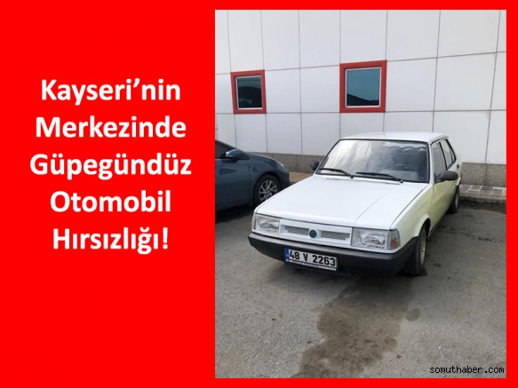Melikgazi İlçe sınırlarındaki Hunat Çarşı önüne park edilen 48 V 2263 plakalı şahin marka beyaz otomobil, kimliği belirlenemeyen kişi ya da kişilerce çalındı.
