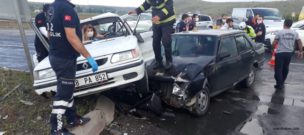 Kaza, akşam saatlerinde, Kayseri- Malatya yolu Tomarza ilçesi yol ayrımında meydana geldi. Sürücüleri henüz öğrenilemeyen 38 PA 852 plakalı otomobille 38 VE 694 plakalı otomobil çarpıştı. Kazada iki otomobildeki N.İ., Y.İ., M.V., Ş.K., S.K., H.K., A.K., T.A. ve ismi henüz öğrenilemeyen 1 kişi yaralandı. Çevredekilerin ihbarı üzerine kaza yerine polis ve sağlık ekipleri sevk edildi. Sağlık görevlilerince ilk müdahalesi yapılan yaralılar ardından çeşitli hastanelere kaldırıldı.