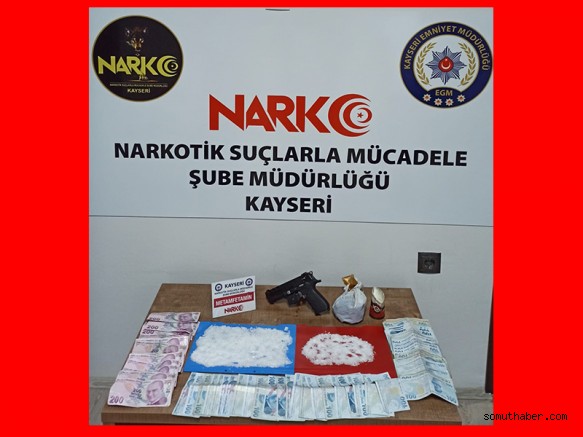 İl Emniyet Müdürlüğü Narkotik Suçlarla Mücadele Şube Müdürlüğü ekipleri, uyuşturucu satıcılarına yönelik dün akşam operasyon düzenledi. Bu kapsamda Melikgazi ilçesi Anbar Mahallesi'ndeki Nakliyeciler sitesinde bulunan TIR tamir ve bakım servisine baskın düzenlendi. İş yeri ve araçlarda yapılan aramada, 180 gram metamfetamin ve uyuşturucu satışından elde edilen 8 bin 940 lira ile tabanca ele geçirildi. İş yerinde bulunan E.D., Y.E.,Ü.K ile H.Ş. gözaltına alındı.