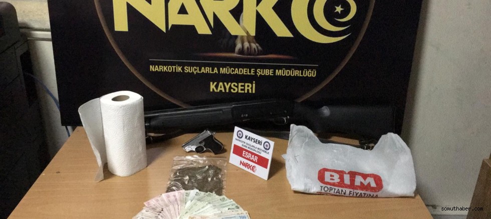 Şüphelilerin araç, ev ve üst aramalarında 4.80 gram metamfetamin, 26.8 gram esrar, 1 pompalı tüfek, 1 ruhsatsız tabanca, 995 lira uyuşturucu ticaretinden elde edilen para ele geçirildi.