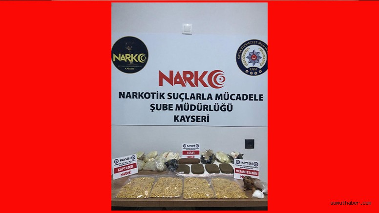 İl Emniyet Müdürlüğü Narkotik Suçlarla Mücadele Şube Müdürlüğü ekipleri, uyuşturucu ticareti yapan kişilere yönelik çalışma başlattı. Bu kapsamda Kayseri-Malatya karayolunda yol kontrolü yapan ekipler içinde yabancı uyruklu M.A., R.D. ve M.E'nin bulunduğu otomobili durdurdu. Araçta yapılan aramada 1 kilo 383 gram esrar, 20 gram metamfetamin ve 3 bin 885 adet uyuşturucu hap ele geçirdi. Olayla ilgili gözaltına alınan şüpheliler, Emniyet Müdürlüğü'ne götürüldü.