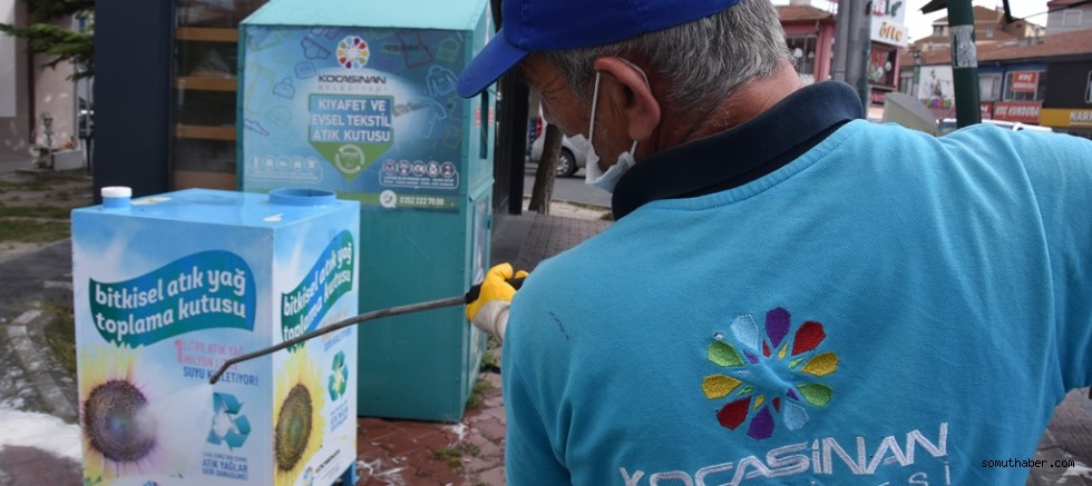 için çöp konteynırlarını modern araçlarla dezenfekte ederek temizliyor.