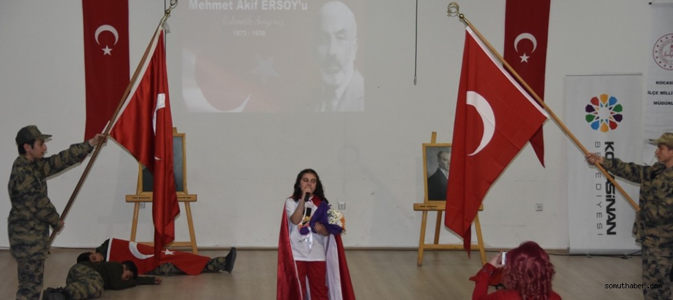 Kocasinan Belediyesi Kültür İşleri Müdürlüğü’nün ev sahipliğinde Yeşil Mahalle Mehmet Akif Ersoy Ortaokulu konferans salonunda düzenlenen etkinliğe Kocasinan İlçe Milli Eğitim Müdürü Yaşar Öztürk, Şube Müdürü Erol Türkmen, Kültür İşleri Müdürü İbrahim Özcan, öğretmenler ve öğrenciler katıldı.