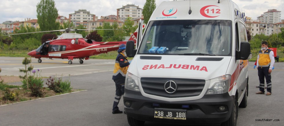 Sarız’dan ambulans helikopter ile Kayseri’ye nakledilen Musa Döner, helikopterden ambulansa alınarak hastaneye kaldırıldı.