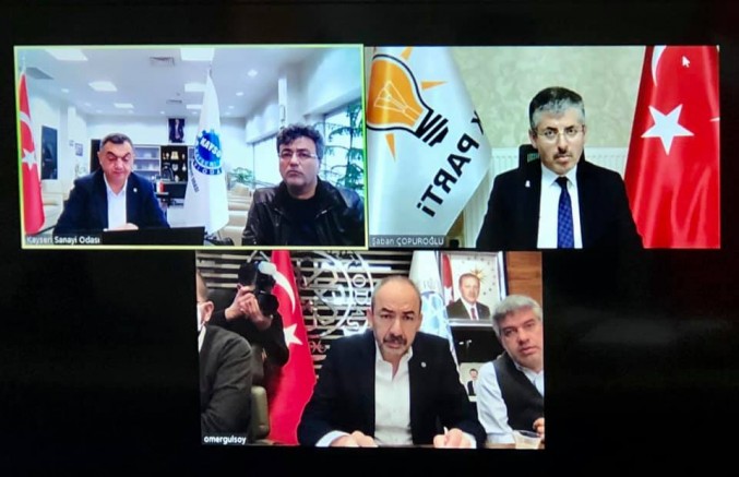 Koronavirüs salgını nedeniyle iş dünyasında ve halkın yaşadığı sorunları yakından takip eden AK Parti Kayseri İl Başkanı Şaban Çopuroğlu, Kayseri Ticaret Odası Başkanı Ömer Gülsoy ve Kayseri Sanayi Odası Başkanı Mehmet Büyüksimitçi ile bir ardaya geldi. Telekonferans yöntemiyle bir araya gelen Başkan Çopuroğlu, Gülsoy ve Büyüksimitçi ile görüş alışverişinde bulundu ve başkanları dinledi.