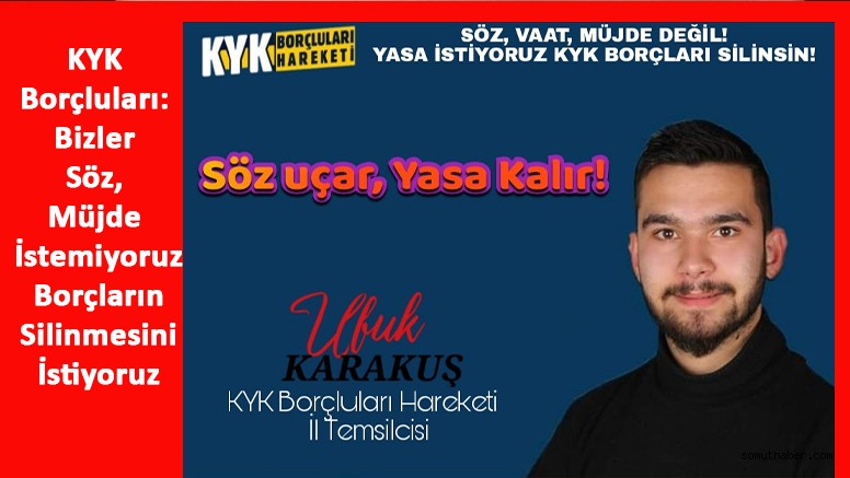 KYK Borçluları Hareketi Kayseri İl Temsilcisi Ufuk Karakuş, yaptığı açıklamada, söz ya da müjde beklemediklerini ve borçlarının silinmesini istediklerini belirterek şunları söyledi: