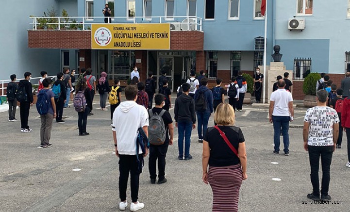Malltepe'de bulunan Küçükyalı Mesleki ve Teknik Anadolu Lisesi'nde öğrenciler, okul girişinde tek tek ateşleri ölçülerek içeri alındı. Sosyal mesafeli olarak okunan İstiklal Marşı'nın ardından öğrenciler okula girdi. Okul kapısının önünde çocuklarını bekleyen öğrenci velileri ise okul yetkililerinin uyarılarıyla sosyal mesafe kurallarına uygun bir şekilde oradan ayrıldı. Bir öğrenci velisi, “Öğrencilerden çok biz heyecanlıyız. Çok büyük bir belirsizlik var. Bu hem öğrencileri hem de bizi bayağı bir geriyor. Hayırlısı olsun." dedi.