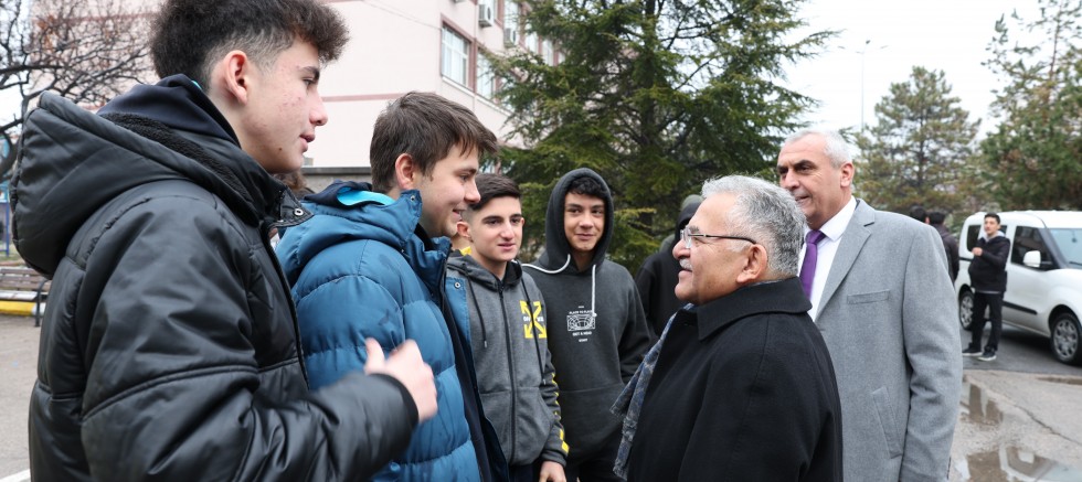 Okul girişinde İl Milli Eğitim Müdürü Ayhan Teltik ve Melikgazi İlçe Milli Eğitim Müdürü Hacı Kaya ile okul yönetimi ve öğrenciler tarafından karşılanan Başkan Büyükkılıç, daha sonra öğretmenler odasında öğretmenler ile bir araya geldi.