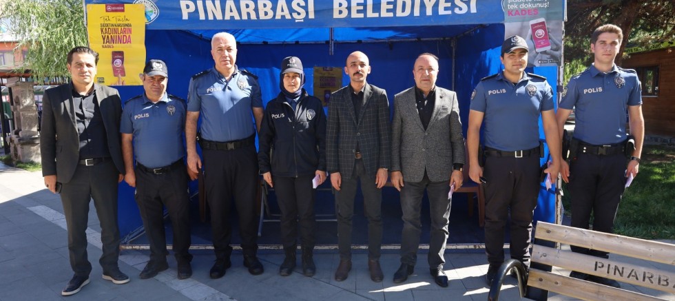 Pınarbaşı İlçe Emniyet Müdürlüğüne bağlı polis ekipleri tarafından kadına karşı şiddet ve Kadın Acil Destek (KADES) uygulaması konusunda vatandaşlara ve kadınlara yönelik bilgilendirme çalışması yapıldı. Bu kapsamda Pınarbaşı Belediye Başkanı Menduh Uzunluoğlu ve İlçe Emniyet Amiri Başkomiser Şeref Paşaoğlu, KADES uygulaması hakkında vatandaşları ve kadın esnafları bilgilendiren polis memurlarının stantını ziyaret etti.