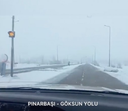 Pınarbaşı / Göksun Karayolu: Hava kapalı, kar yağışı mevcut. Zemin ıslak. Çekici ve TIR trafiğine kapalı.