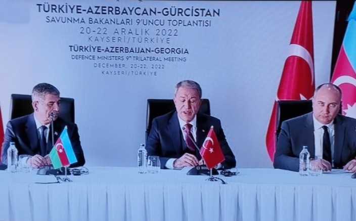 Türkiye, Azerbaycan ve Gürcistan savunma bakanlarının 9’uncu toplantısı Kayseri’de gerçekleştirildi. Erciyes’te bir otelde gerçekleştirilen toplantının ilk günü sonunda Milli Savunma Bakanı Hulusi Akar, Azerbaycan Savunma Bakanı Orgeneral Hasanov ve Gürcistan Savunma Bakanı Burchuladze birlikte açıklama yaptı.