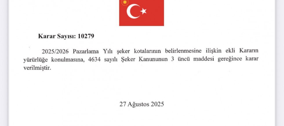Alınan karar, 2025-2026 pazarlama yılında geçerli olmak üzere bugün itibarıyla yürürlüğe girerken, karar hükümlerini Tarım ve Orman Bakanı yürütecek.