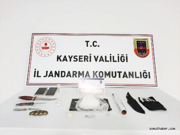 24 Şubat’ta Sarız Darıdere Mahallesi'nde yol kontrolü yapan jandarma, bir otomobili durdurdu. Otomobilde ve içerisinde bulunan Y.K. ve F.S. üzerinde yapılan aramada 300 gram metamfetamin, 3 adet bıçak, 1 adet muşta ve 1 adet uyuşturucu içiminde kullanılan cam aparat ele geçirildi. Y.K. ile F.S. gözaltına alınarak, İlçe Jandarma Komutanlığı'na götürüldü. Y.K. çıkarıldığı mahkemece tutuklandı.