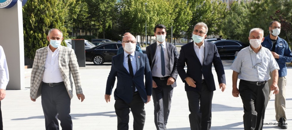 Rektörlük makamındaki gerçekleşen ziyaretin ardından Rektör Prof. Dr. Kurtuluş Karamustafa, senato salonunda konuklarına Kayseri Üniversitesi’nin gelişimi ve Yahyalı MYO’nun geleceği ile ilgili bilgilendirmede bulundu.